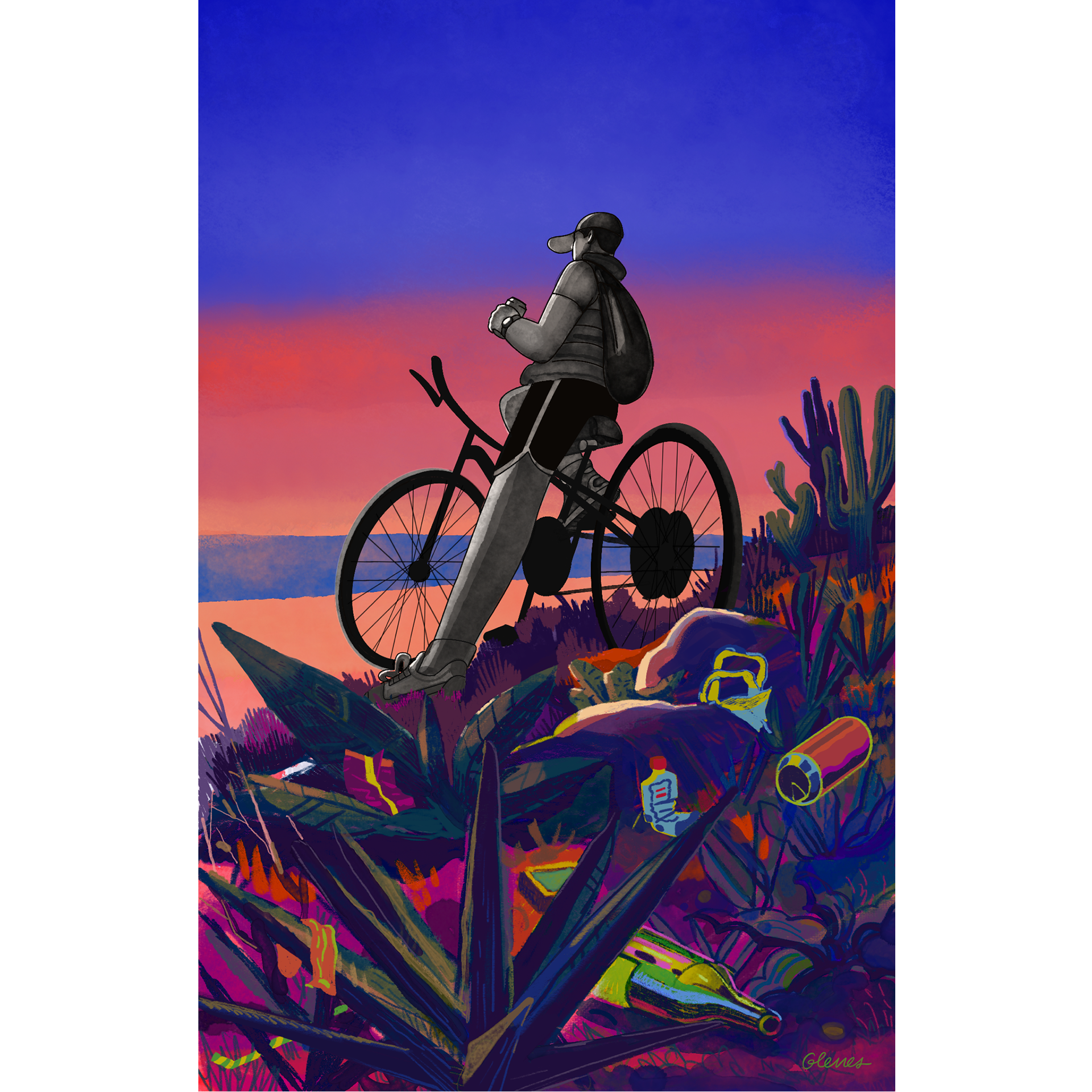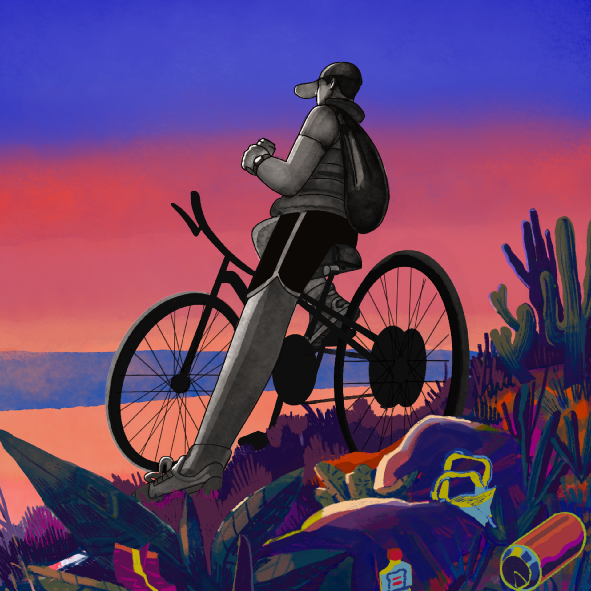 Among cacti and bromeliads, the careless trail of a ride through a neglected beach.